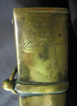 Occasionally, an item appears that is not what it seems or, at least, not what we assume it to be at first glance. When this hanger appeared in the gallery, I read the engraved maker’s name on the top mount of the scabbard and automatically assumed it to be a London made weapon. After all, it said “Parliament S.”. It was only when I began to research the maker that I discovered that I had a piece that was a bit of a rarity, namely a Dublin made Georgian naval sword. (I believe this to be naval, despite having a full brass scabbard, owing to its length.) Moreover, the maker and his shop had a story all their own.